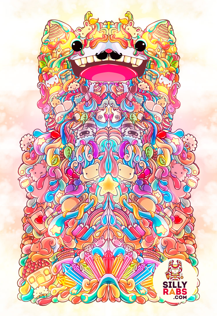 Colorful illustration that interprets a magical being that aves children from nightmares, influenced by kawaii style