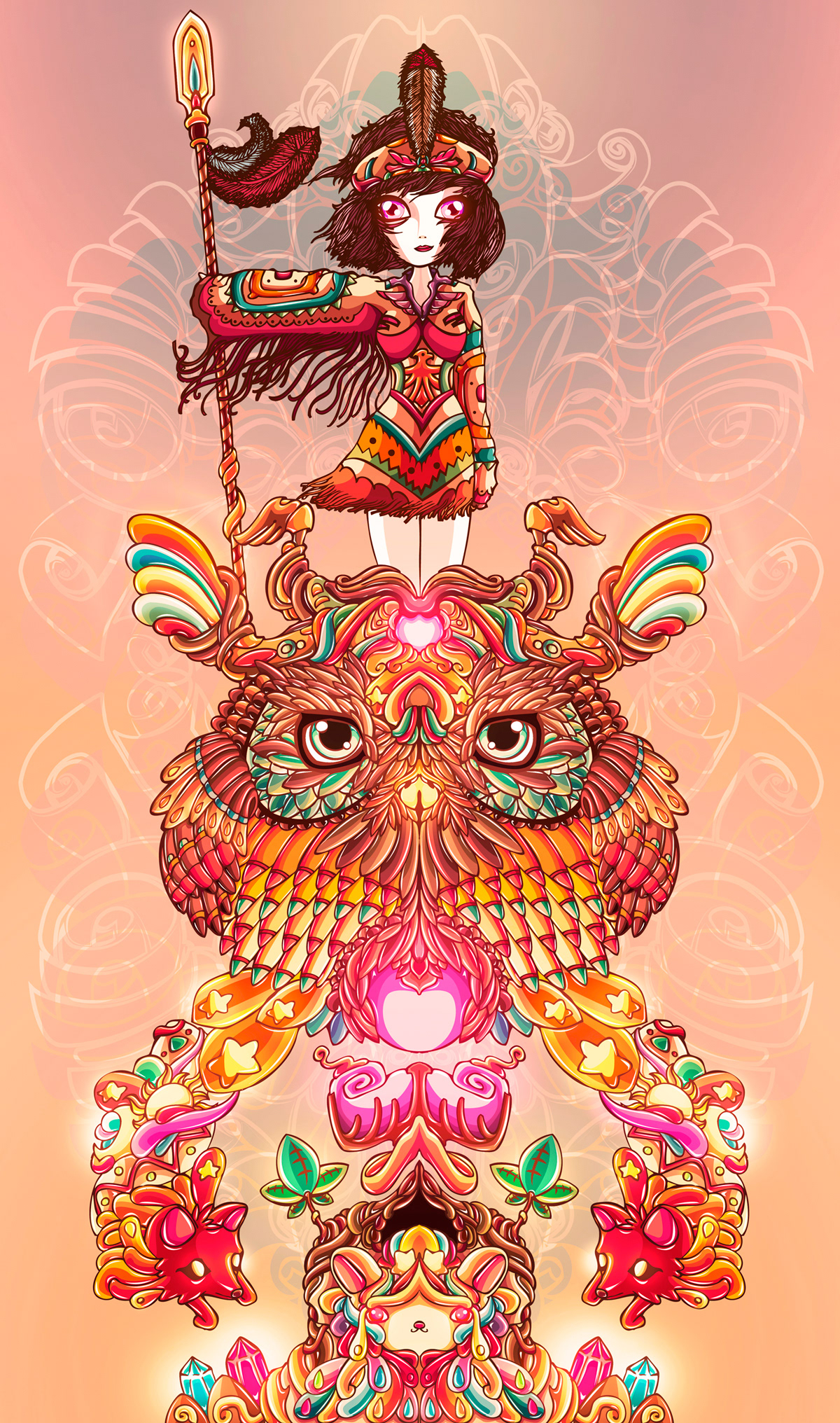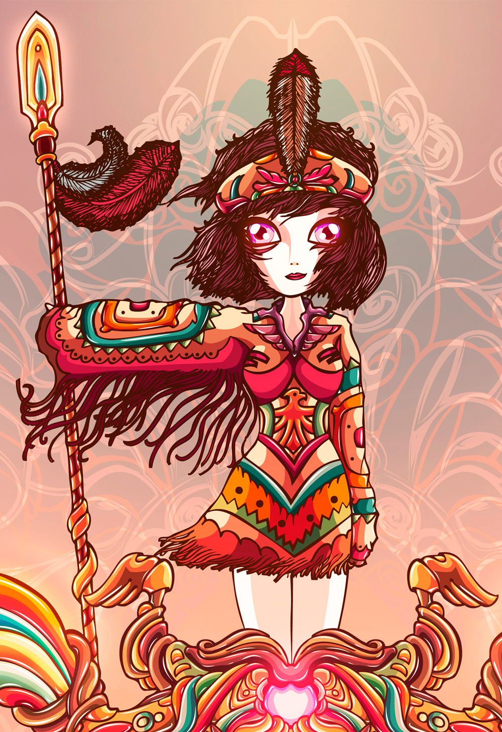 Conceptual illustration that has influence from native american current and inspied by an owl.